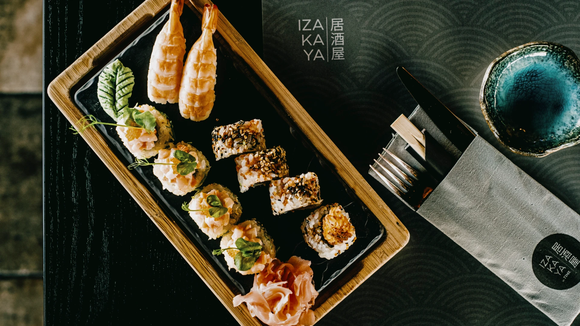 The Izakaya menu offers several types of Nigiri, Uramaki, Hosomaki, Futomaki, Sashimi and a choice of japas: soups, tataki, gyoza, rolls, and steamed buns. There is a selection of vegan dishes, a menu for kids, as well as large salad bowls and great Hawaiian poke.