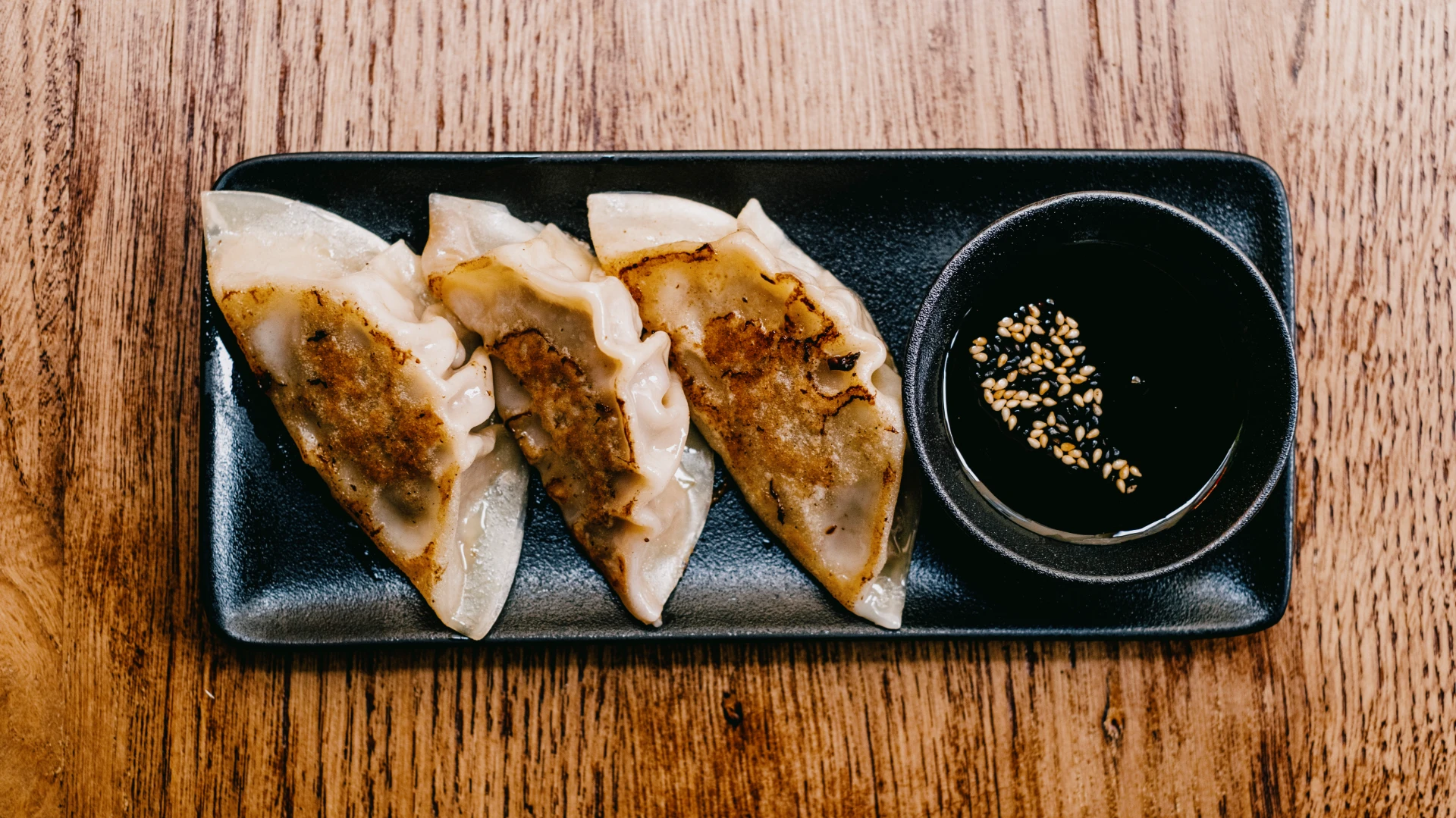 Braised pork and shrimp gyoza were OK, classic, nicely crispy on the outside, and juicy and tasty inside. The dipping sauce was better than what you usually get.