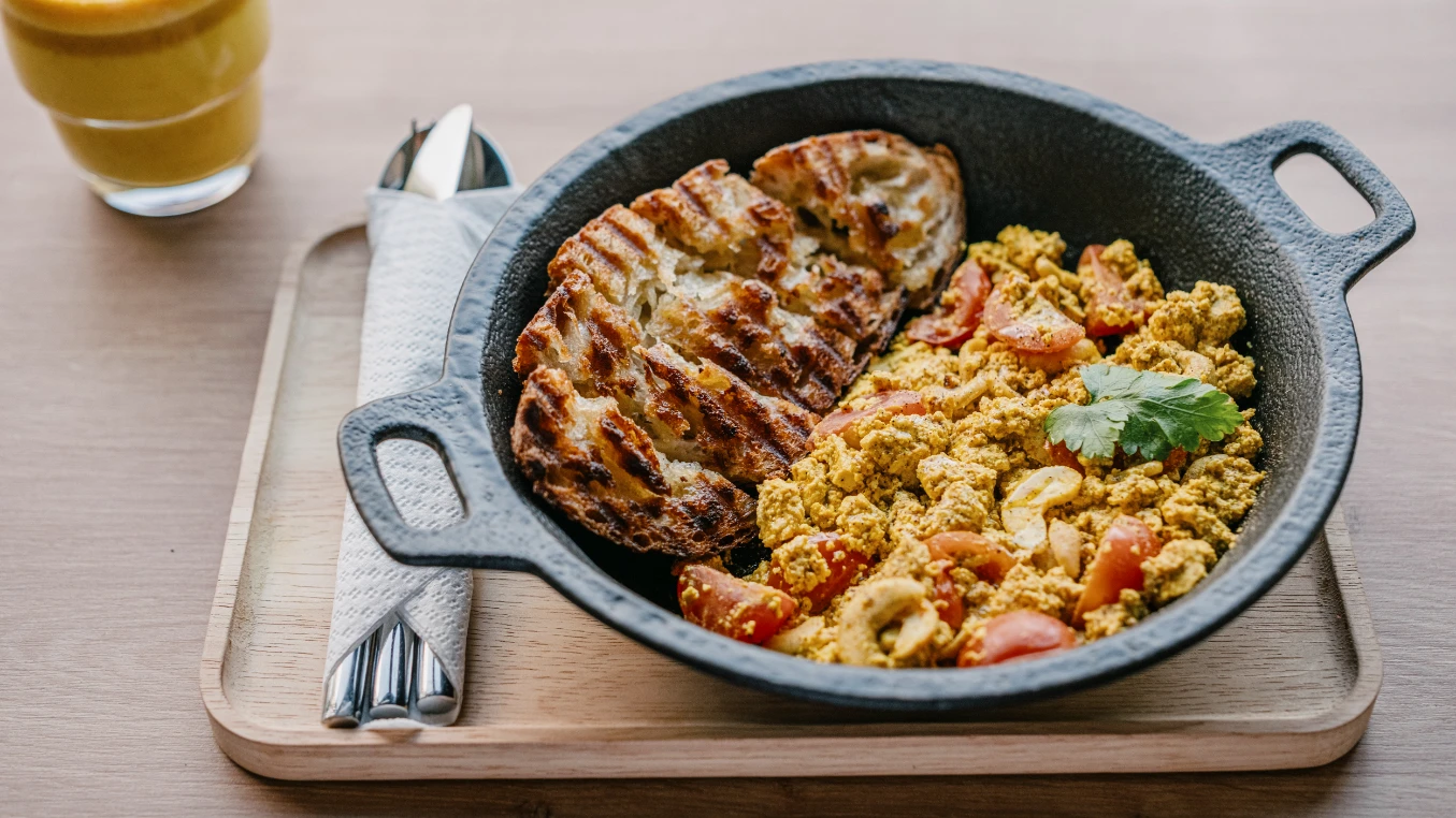 We started off with a very tasty Tofu Scramble, a dish rich in spices that plays with the form and texture of scrambled eggs, but is made from cashews and tofu. It is accompanied with delicious toasted sourdough bread and cherry tomatoes and served in interesting heavy iron bowls. We also had the excellent Lox on Sourdough, a large bruschetta made from the same sourdough bread, where the 'lox', that is salmon, is replaced by thinly sliced carrots marinated in algae; the bruschetta is enriched with onions and a wonderful in-house prepared cashew spread. We ended our meal with delicious soft energy balls, in the flavours of carrot cake and ginger.