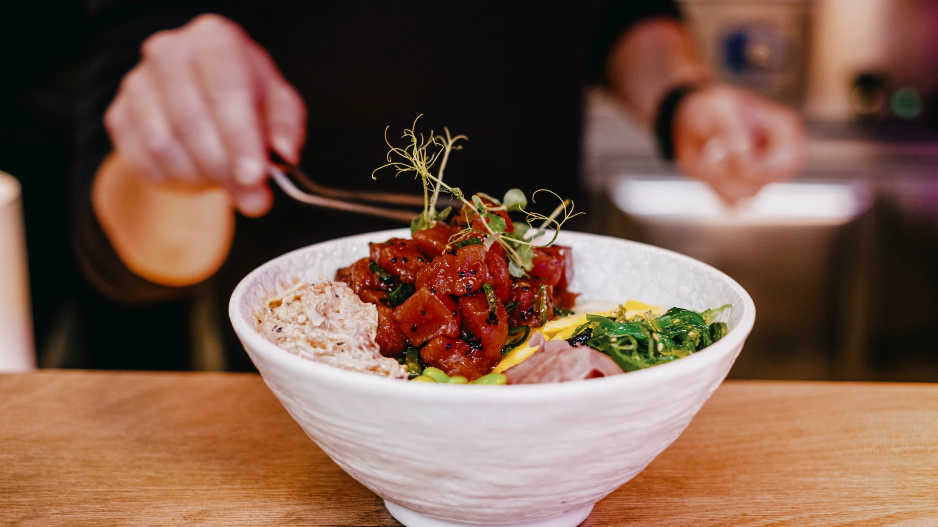 For starters, you can get two kinds of gyoza, or a lobster steamed bun. Rice bowls come with katsu chicken, tuna and lobster poke, Korean fried chicken, and a Kung Pao. Noodles come in Beef Teriyaki and Dan Dan style.