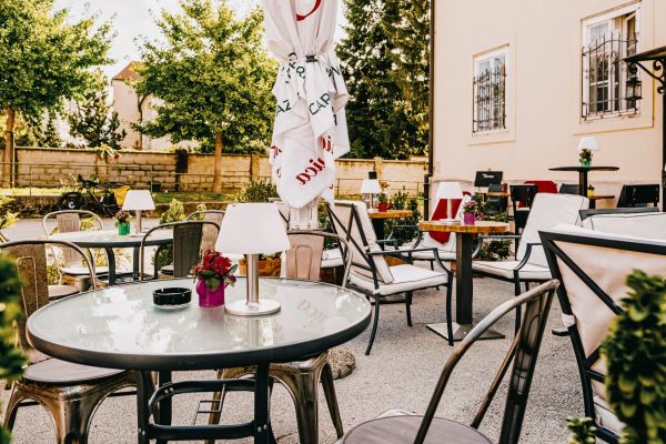 Opuštajuće zeleno unutarnje dvorište s vrhunskom kavom