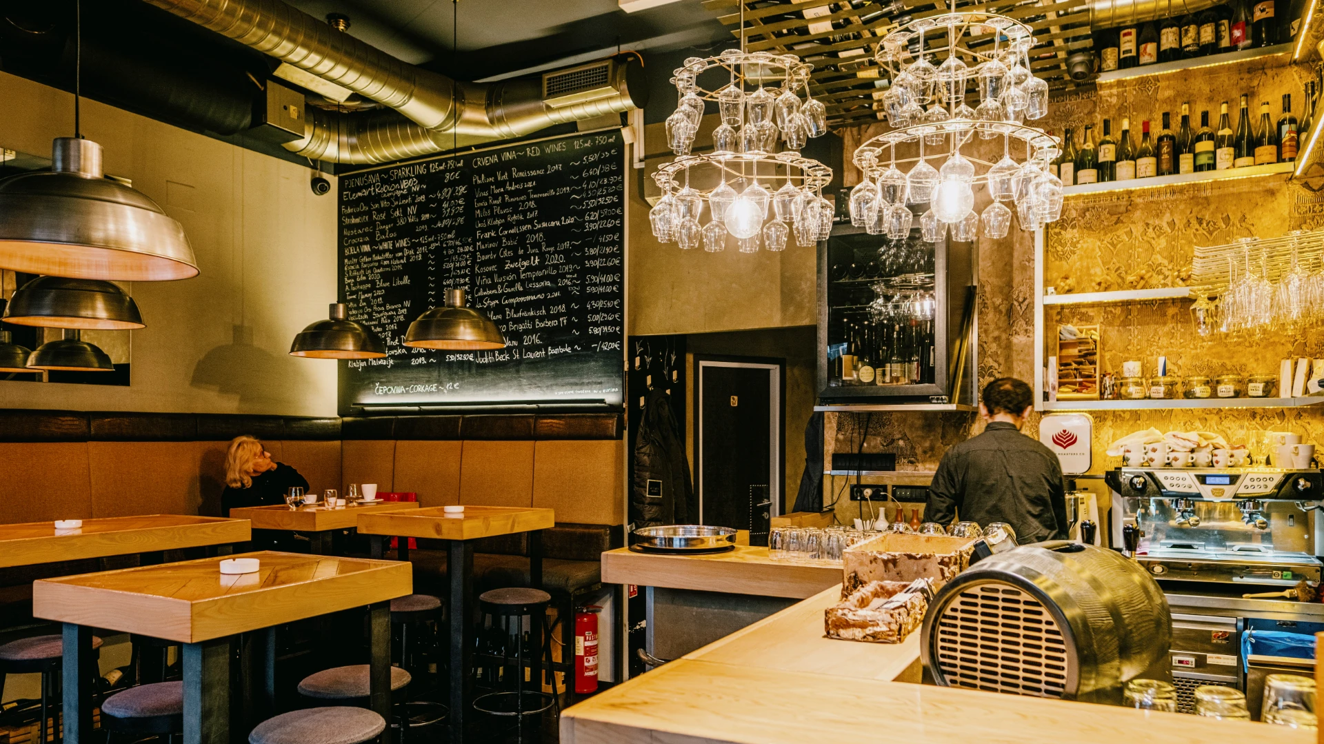 Interijer je jednostavan i uređen u industrijskom stilu, uz visoko sjedenje oko drvenih stolova s visokim stolicama i šankom. Terasa nije velika i prilično je bučna zbog prometne ulice na kojoj se nalazi. Osoblje je dobro informirano i učinkovit, iako ponekad distancirano.