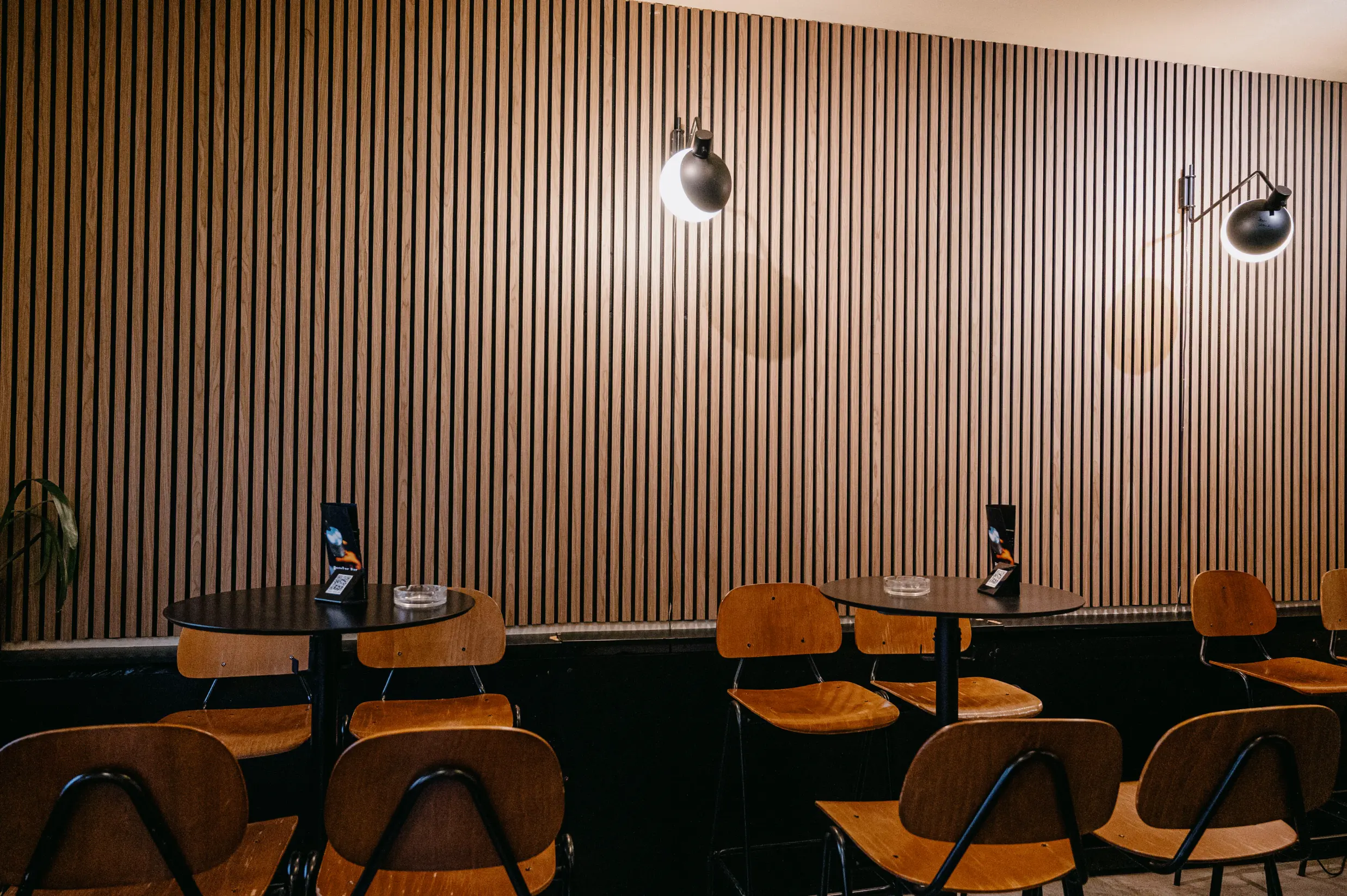 Interijer je minimalistički, ali topao – crni stolovi i drvene stolice nose patinu svakodnevnih susreta, dok detalji zelenila i posteri na zidovima unose suvremenu vibru. Danju prostor obasjava prirodna svjetlost koja se prelijeva kroz prozore i stvara miran kutak za kavu ili sok. Navečer se sve mijenja, svjetla postaju intimnija, glazba raste i prostor se pretvara u urbani bar s energijom koja traje do kasnih noćnih sati.