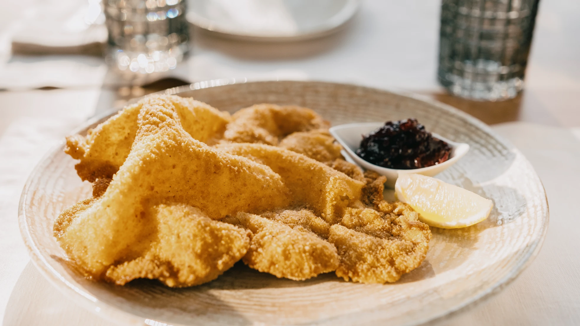 Nije bilo lako odabrati jela za ručak, jer zaista puno toga na jelovniku zvuči primamljivo. Delicious Zagreb tim za početak se odlučio za hrskave inćune na podlozi od orzota sa špinatom i brusnicama te tjesteninu paccheri s hobotnicom. Inćuni su zaista hrskavi jer su panirani u panko mrvicama i prženi taman toliko da zadrže sočnost. Kao kontrapunkt poslužen je kremasti orzoto sa špinatom i brusnicama, koje taman dodaju slatko-kiselu notu. Paccheri s hobotnicom bili su božanstveni. Ako volite tjesteninu na crveno, ovo je definitivno jelo za vas – savršeno izbalansirana kiselina rajčice, intenzitet suhe rajčice i mediteranskog bilja te pjena od parmezana u kombinaciji sa slatkoćom hobotnice te robusnim paccherima. Za glavno jelo jednostavno nismo mogli odoljeti njihovu nadaleko poznatom specijalitetu – telećem bečkom odresku u pročišćenom maslacu, uz krumpir salatu i džem od brusnica. Za naoko najjednostavnija jela uvijek je potrebna velika umješnost, a ovaj je bečki bio naprosto izvanredan. Uz ručak smo pili po čašu austrijskog veltlinera i talijanskog chiantija, a sve smo za kraj zasladili modernom inačicom tiramisua.