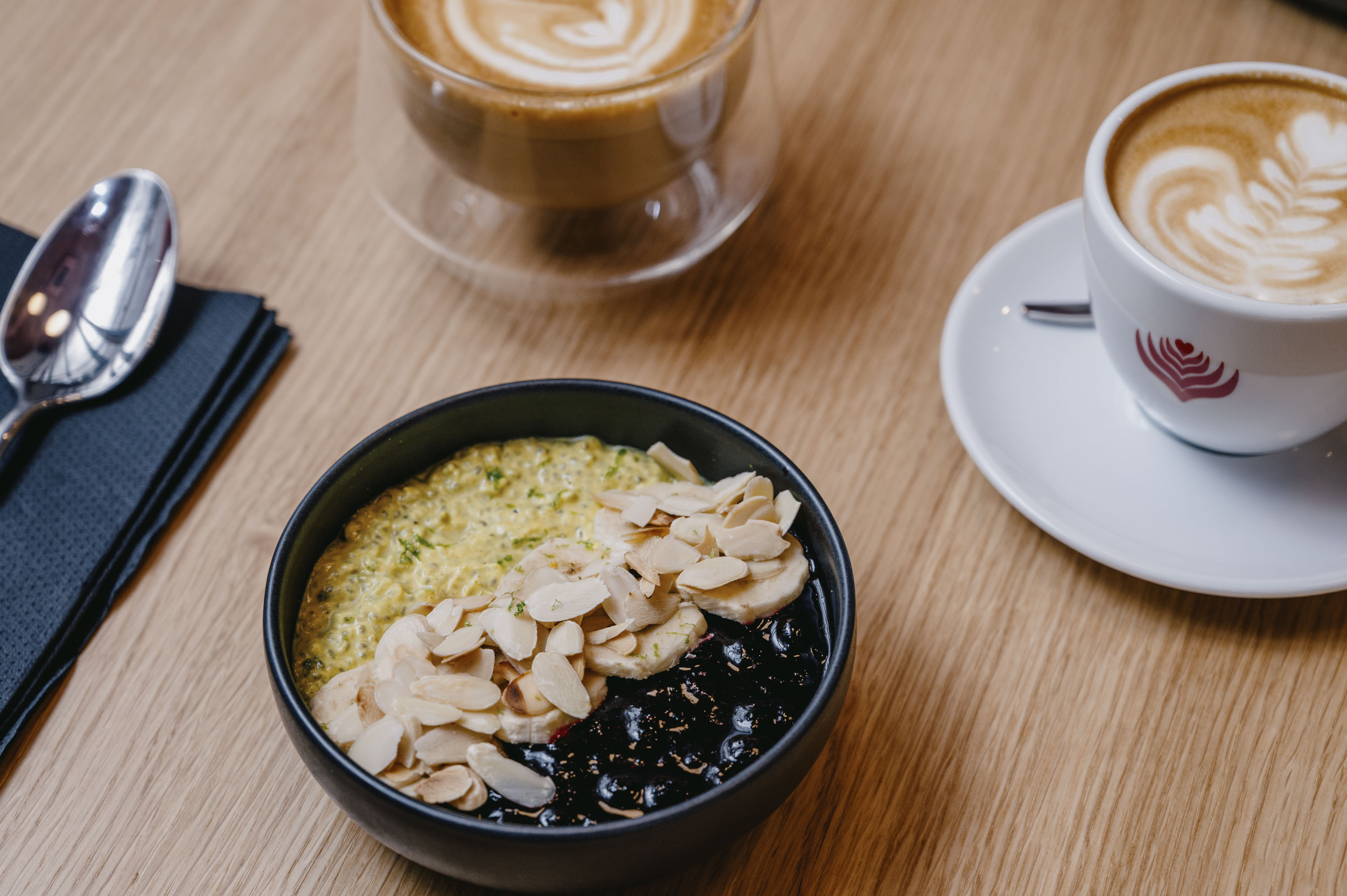 Specijalitetne kave očekivano su u fokusu, ali i neobične kombinacije poput cikla lattea ili lattea od maslinova lista. Tu su i čajevi, kombuche, hladno prešani sokovi i smoothieji – za one koji vole zdraviji jutarnji ritam.