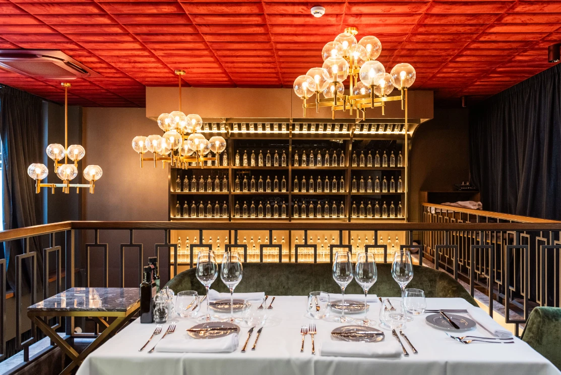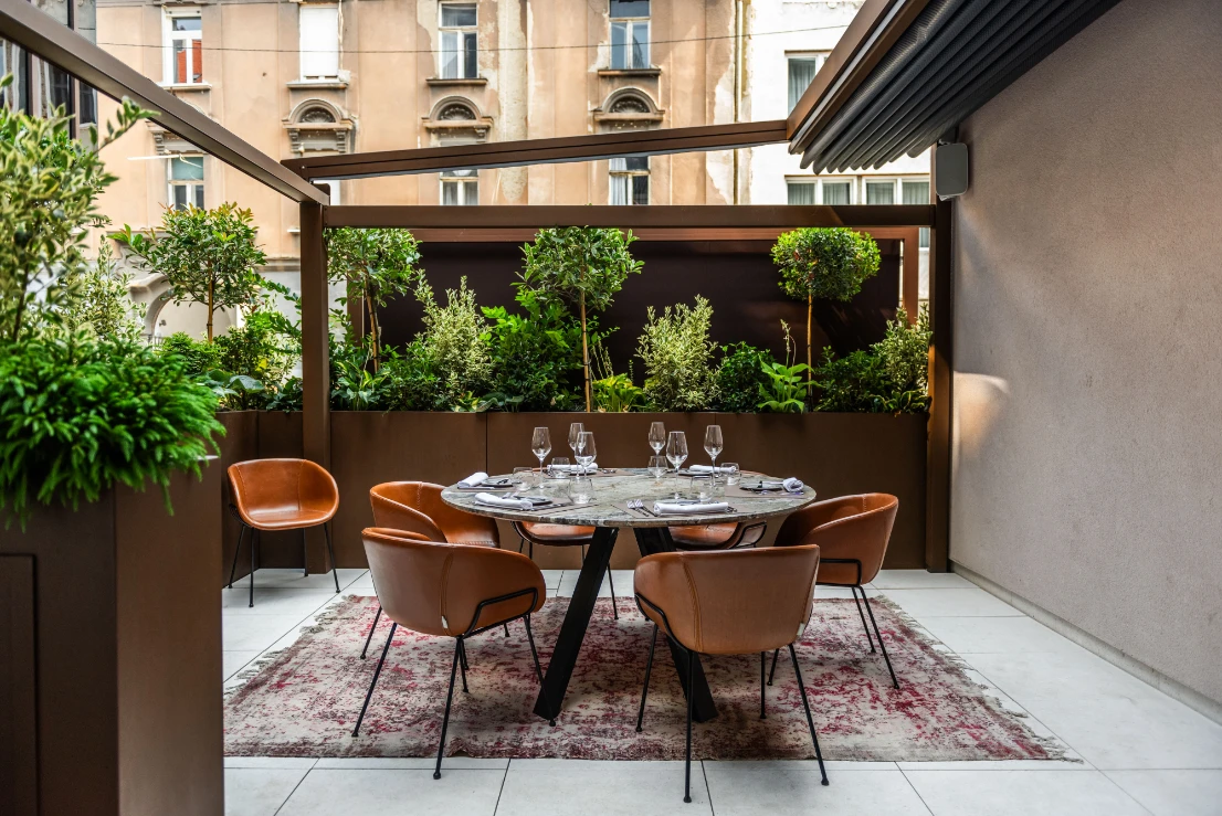 Restoran je smješten u novogradnji, ali uvučen s ulice. Prvo što će vam upasti u oko ozelenjena je moderna terasa koja je, iako u neposrednoj blizini prometne Petrinjske, ugodno intimna. Interijerom restorana prevladavaju zemljani tonovi, bogati materijali i prigušena svjetla pa je cjelokupni dojam restorana elegantan, moćan i moderan. Mjesto je ovo gdje možete odraditi poslovni ručak, proslaviti neku prigodu ili jednostavno uživati u izlasku.