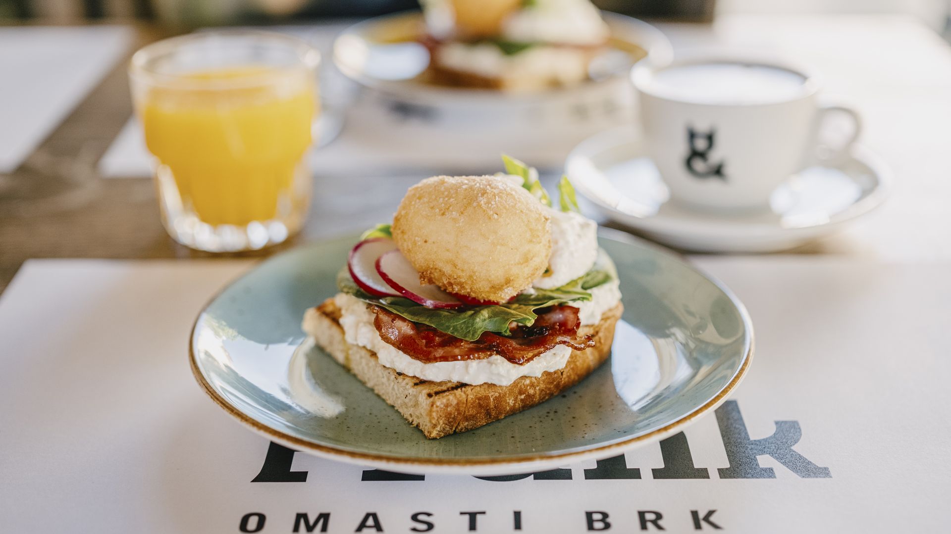 Zagrebački doručak signature je jelo koje je uvijek na meniju i služi se cijeli dan. Radi se o pohanim poširanim jajima na tostiranom kruhu s grilanom šunkom i salatom, uz sir i vrhnje, hren, rotkvice i mladi luk. Za doručak se još nudi i domaća granola, zobena kaša, french toast te jaja na oko, a od podneva kreću bogati burgeri i crostini.