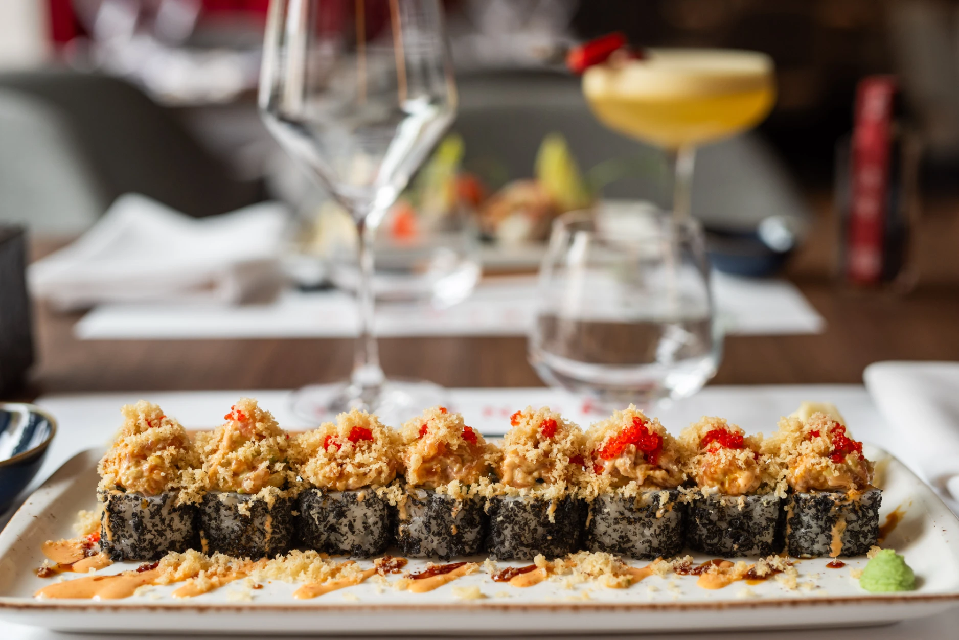Za glavno jelo odlučili smo se za maki rolls — soft shell crab i crunchy tempuru. Radi se o bogatim i maštovitim sushi rolicama. Soft shell crab roll sastoji se od mesa raka mekog oklopa, krastavaca, avokada, klica, majoneze, gochujang umaka te tobiko ikre, a tempura crunchy roll od kozica u tempuri, krastavaca, avokada, dynamite umaka te komadića tempure. Uz sushi smo uživali u njemačkom rizlingu.