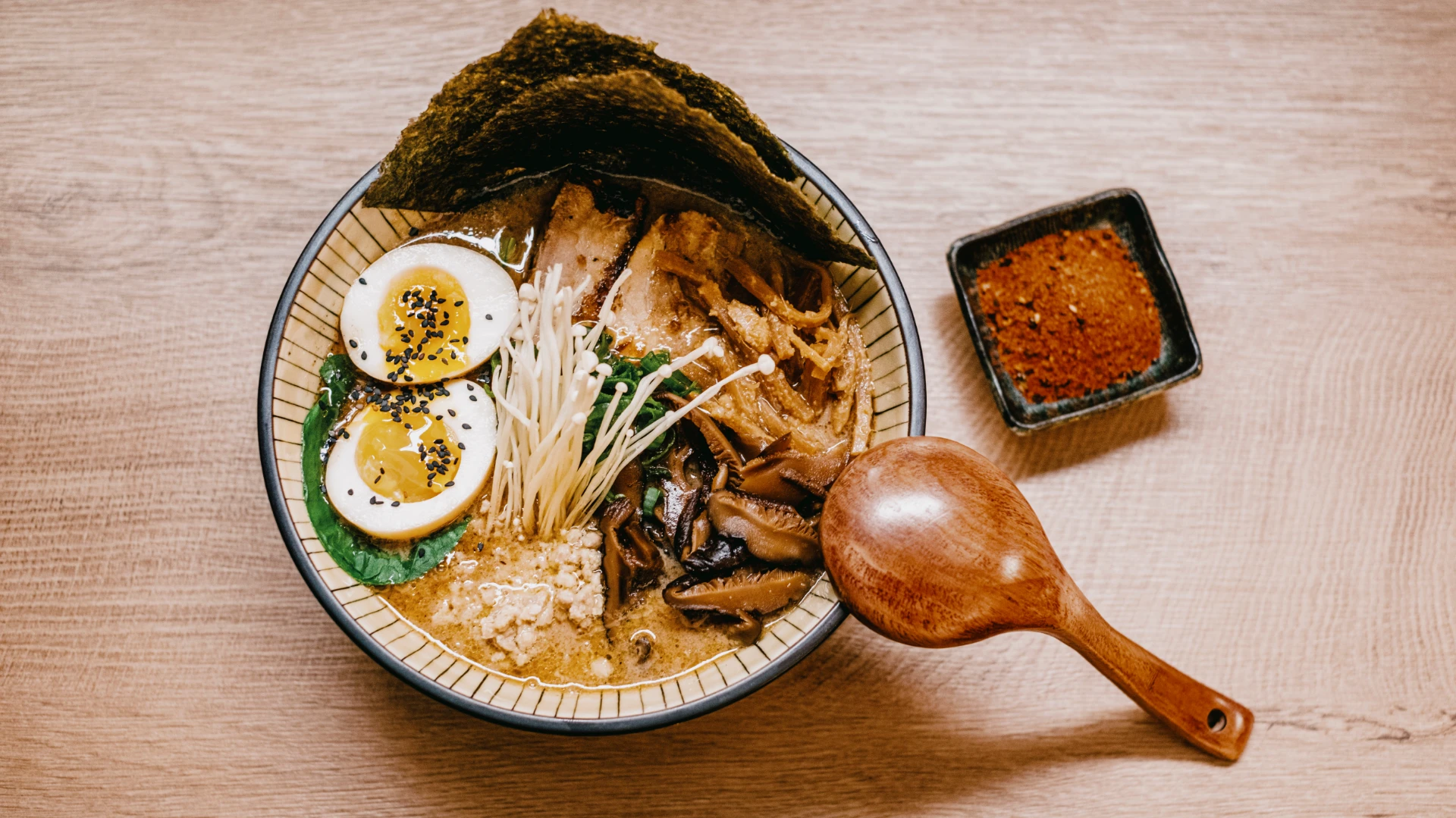 Rameni su TanTanMen i Shrimp Laksa. Okusi su vješto izbalansirani između atraktivnih začina i namirnica. Deserti su iz lokalne zanatske slastičarnice Le Kolač ili izbor mochi sladoleda vlastite proizvodnje.